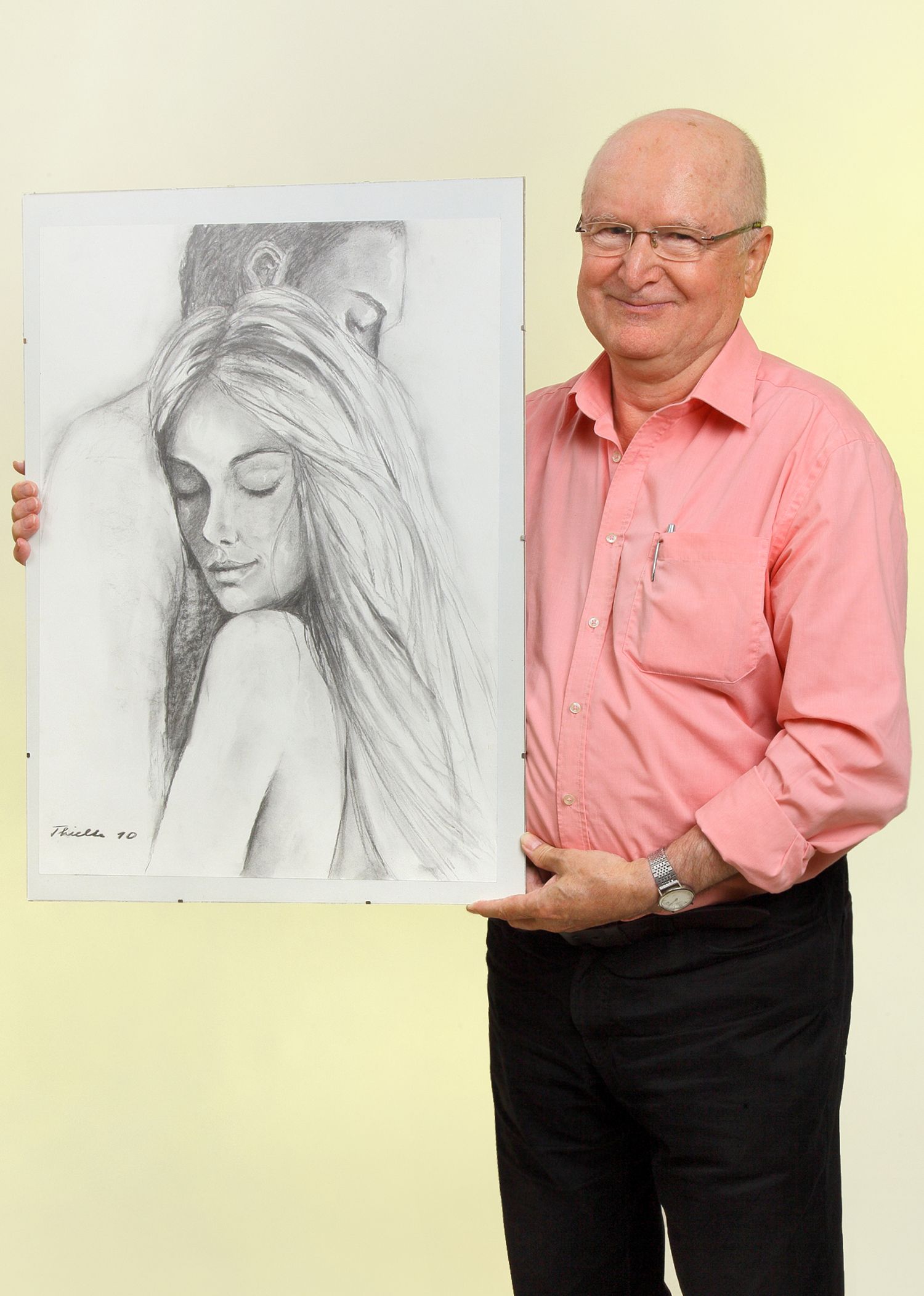 Ich halte die Zeichnung "Geborgenheit" von Ursula Thielke (Heiddorf)